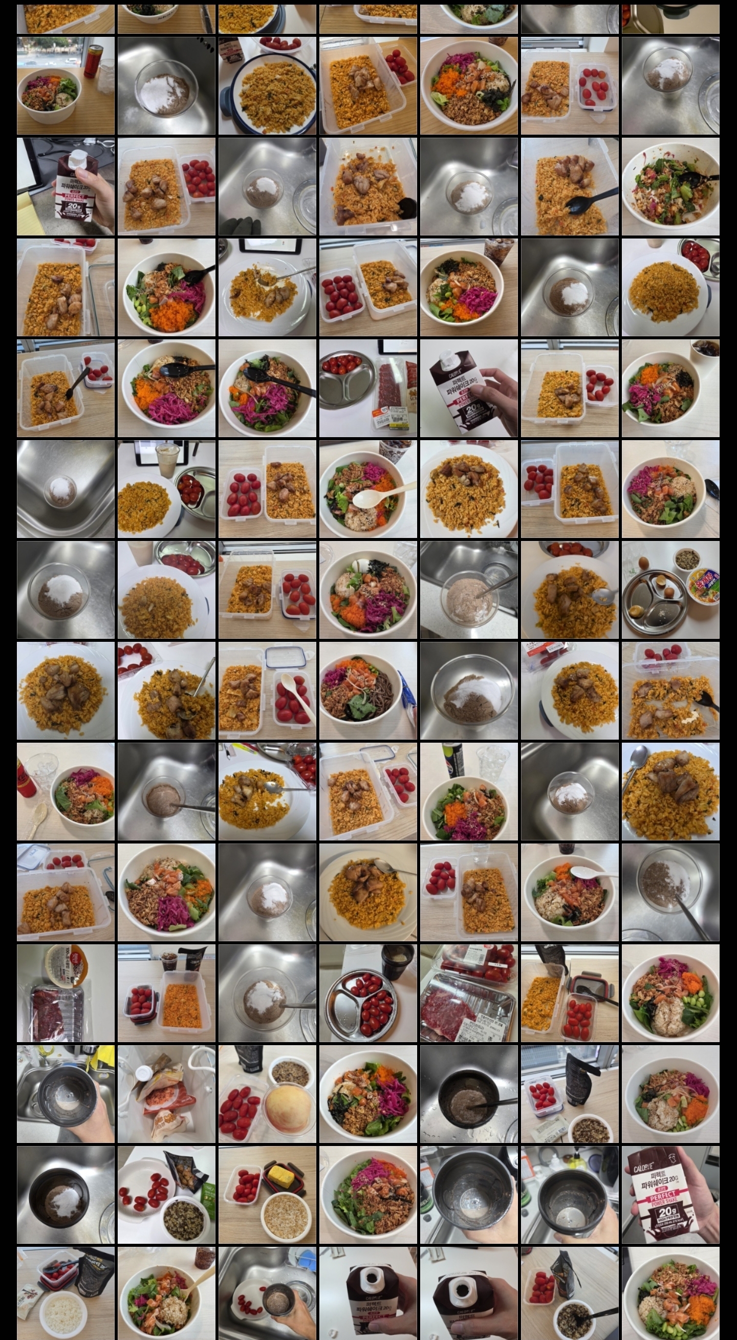 본격적으로 식단 관리를 시작한 시기입니다. 그리고 그때 시작한 식단 관리는 지금도 이어서 하고 있습니다. 거의 평일에는 정해진 식단(쉐이크, 닭가슴살 볶음밥, 닭(가슴살/다리살), 방울토마토)으로 관리하고 있습니다. 그래도 약속이 있거나 주말에는 어느 정도 편하게 먹고 있어요.